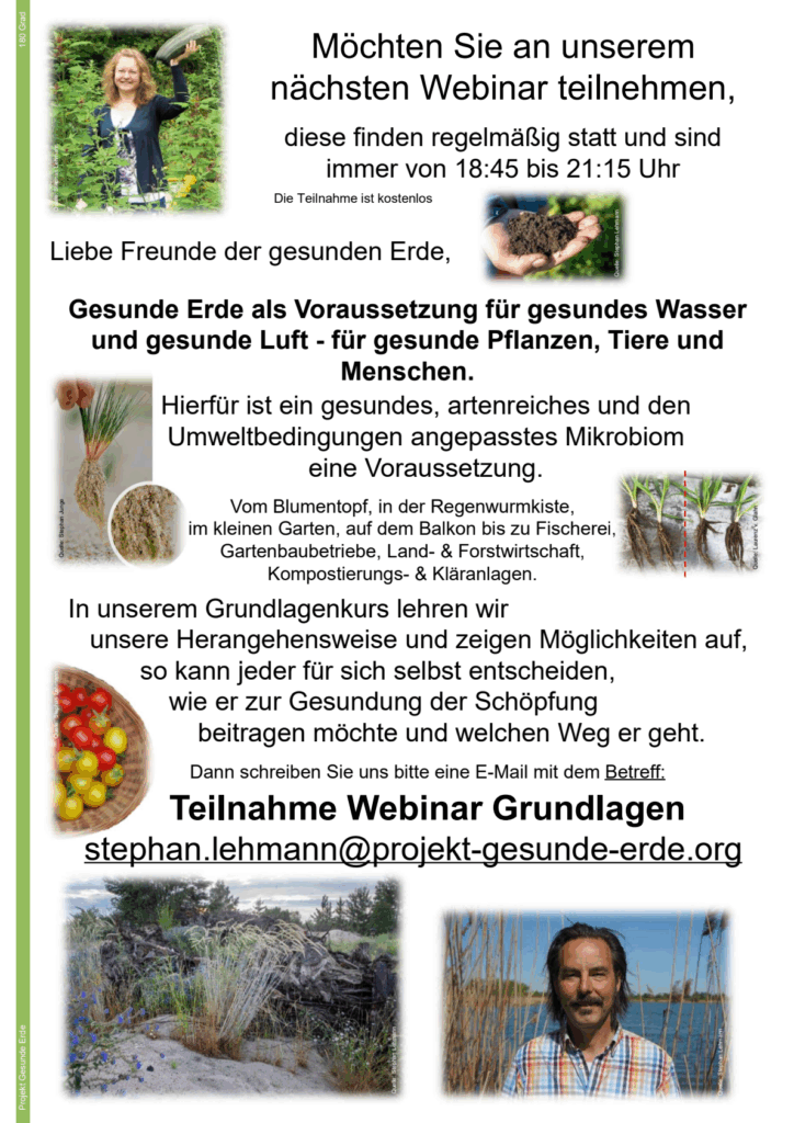 Hier lernen Mikroorganismen in höchster mikrobieller Aktivität und Vielfalt auch neuartige Schadstoffe und Krankheitserreger wieder abzubauen. Hier vereinen sich Lehren der großen Humusforscher weltweit.